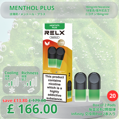 Menthol Plus / 20 Boxes (40Pods) to save £13.80